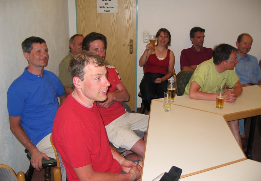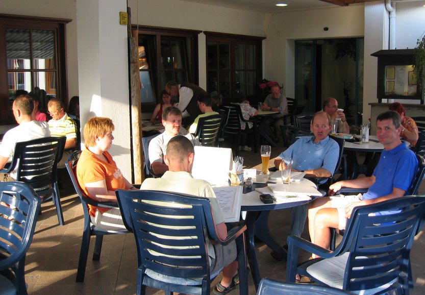 Das Hotel war das Beste was wir auf der Tour hatten. Am Abend traf L. Perner zu einer Präsentation des Bosch – Werkes Blaichach/Immenstadt bei uns ein. Über die Hälfte der Radler/innen hatten sich vermutlich durch den Pollenflug und den damit verbundenem Ungeziefer, einen Pickel-Ausschlag eingehandelt. Da Rainer zumeist am Gruppenende Eva begleitete, glaubte er sämtliche sichtbare Pickel von Eva gezählt zu haben. Nach dem Start in Immenstadt besuchten wir eine Apotheke, um Eva`s kleine Hauthöcker medizinisch einzudämmen.