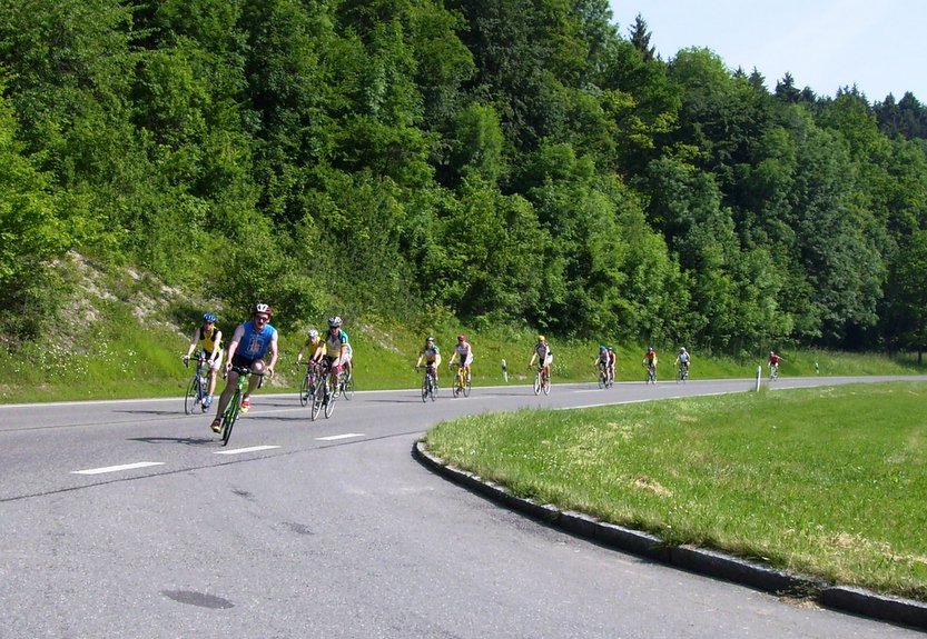 Von nun an ging es über die Zwiefaltener Alb, Riedlingen, Bad Saulgau, nach Ravensburg. Kurz vor Ravensburg war die große Mittagspause, Heike und Michael mussten wir aus einer falschen Richtung zurückpfeifen, um an einem schattigen Waldrand zu rasten.