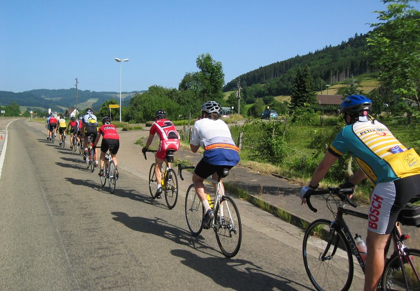 Schon ausgangs des Wildgutachtales in Richtung Simonswäldertal, wurde bei einem Gegenanstieg derart scharf attackiert, dass Rolf reißen lassen musste. Wo war die Loyalität der letzten Etappe – Rolf wurde an keinem Buckel verschont, warum wohl, hatte dies einen Grund ???