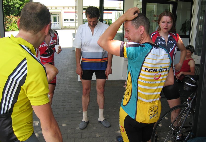 Rolf sagte, dass wie bei der Tour de France, auf der letzten Etappe ein Nichtangriffspakt beschlossene Sache ist. Ein leichtes Schmunzeln ging über mancher Lippen, vermutlich hat er dieses nicht registriert. Albert hatte schon beim Frühstück im Helmlehof Kollegen motiviert, um Rolf bei den wenigen Bergwertungen aus der Reserve zu locken.