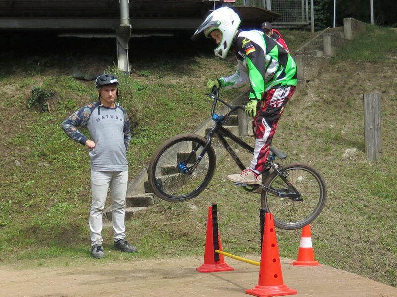 Vor allem die Videoanalyse ihrer eigenen Starts bescherte den meisten Racern einen Aha-Effekt. Sich selbst fahren zu sehen und den eigenen Bewegungsablauf analysiert zu bekommen, war ein besonderes Highlight. „Ich habe sehr viel dazugelernt. Leo kann die verschiedenen Techniken super erklären und auch vormachen. Ich bin total begeistert!“ resümiert eines der BMX-Mädels den Trainingstag. Ob Pushen, Gate-Start, Wheelen, Springen oder Kurventechnik, es wurden alle im Rennen notwendigen Elemente trainiert und verbessert. Neben den Belastungsphasen gehören Pausen selbstverständlich ebenso zum Trainingsablauf.