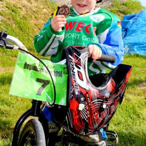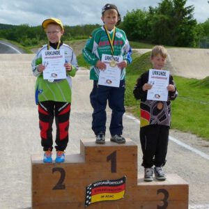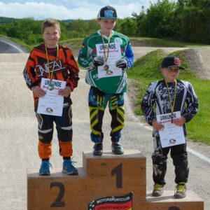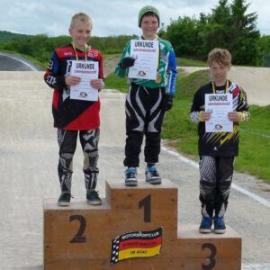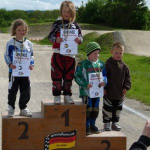 Am Sonntag fanden dann die Baden-Württembergischen Landesverbandsmeisterschaften statt. Die Teilnahme ist Voraussetzung um bei den deutschen BMX-Meisterschaften in Vechta/Niedersachsen mitzufahren. Auch der RSV Falkenfels Bühlertal ließ sich die Möglichkeit nicht nehmen um einige seiner jungen und erfahrenen BMX Akteure ins Rennen zu schicken. Dreizehn Sportlerinnen und Sportler aus dem Badischen waren in verschiedenen Altersklassen gemeldet. Fünf Beginner starteten um beim Beginners-Cup weitere Punkte für die Gesamtwertung zu sammeln. Valentino Splisteser eröffnete als jüngster Teilnehmer aus Bühlertal mit neuem Rennequipment die Ausscheidungsläufe, verbesserte sich kontinuierlich in jedem Rennen und erreichte im Finale sogar den dritten Platz. Espen Rall und Linus Bross starteten eine Altersstufe höher bei den Jungs U9. Linus fuhr tapfer seine Vorläufe, die Espen fast alle gewinnen konnte und so war es auch kein Wunder, das er am Ende ganz oben auf den Treppchen stand. Morris Wild U11 und Matteo Kron U13 absolvierten gute Vorläufe und fuhren jeweils im Finale auf dem sechsten Platz.