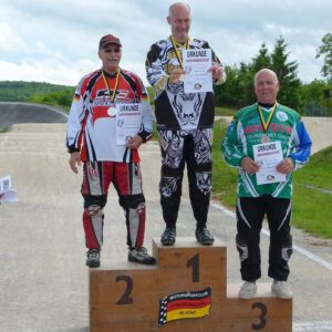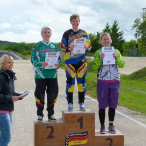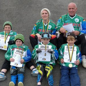 Die acht Lizenzfahrer der BMX Abteilung waren auch gut vorbereitet und konnten im Finale zwei Gewinner bei den Baden-Württembergischen Landesmeisterschaften präsentieren. Während Sandy Bross bei den Cruisern Seniorinnen und Gerhard Weck bei den Cruisern Senioren IV mit all der Erfahrung einen zweiten und dritten Platz einfahren konnten, hatten es die beiden jüngsten Fahrerinnen Lea Bross und Lilly Ochs sehr schwer. Sie mussten auf Grund geringer Teilnehmerzahl bei den Jungs mitfahren und hatten nicht die Möglichkeit das Finale zu erreichen. Auch bei Simon Doninger U11 und Robin Kalender U13 war nach den Vorläufen Schluss. Sein Bruder Leon Kalender U9 und Lucas Mues U11 dominierten die Vorlaufgruppen. Leon zog sofort ins Finale ein, Lucas musste wegen der größeren Teilnehmerzahl noch ein Halbfinale überstehen, gewann dies auch. In den Finals waren die beiden selbst durch Wind und Wetter sowie starke Konkurrenz nicht zu stoppen und beide fuhren eindeutig als Gewinner bei dem Landesverbandsmeisterschaften über die Ziellinie.