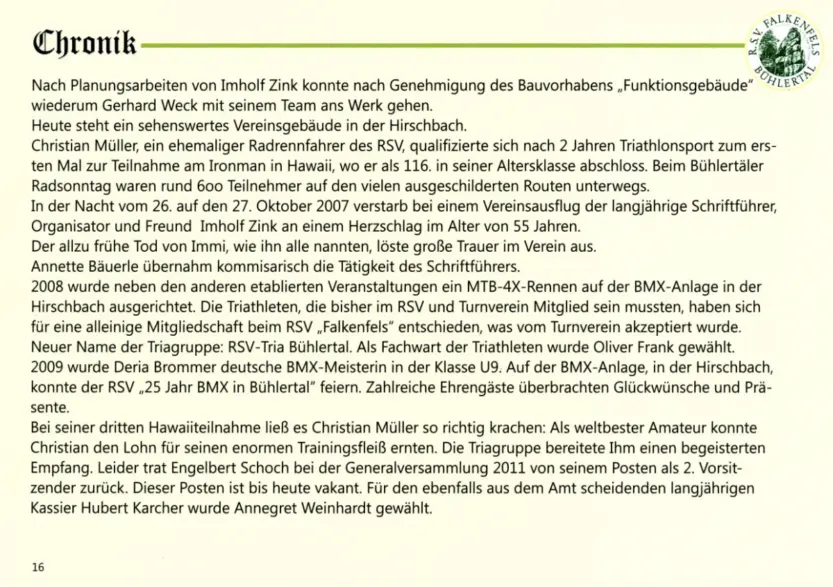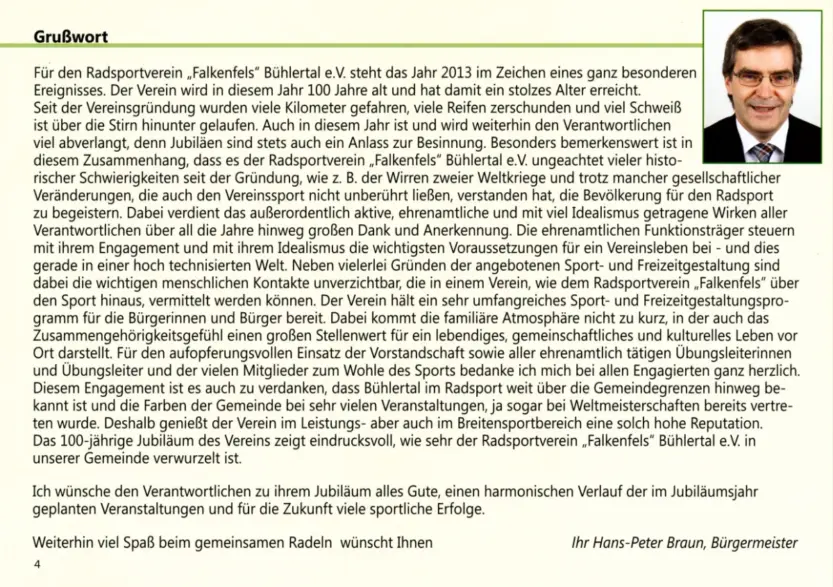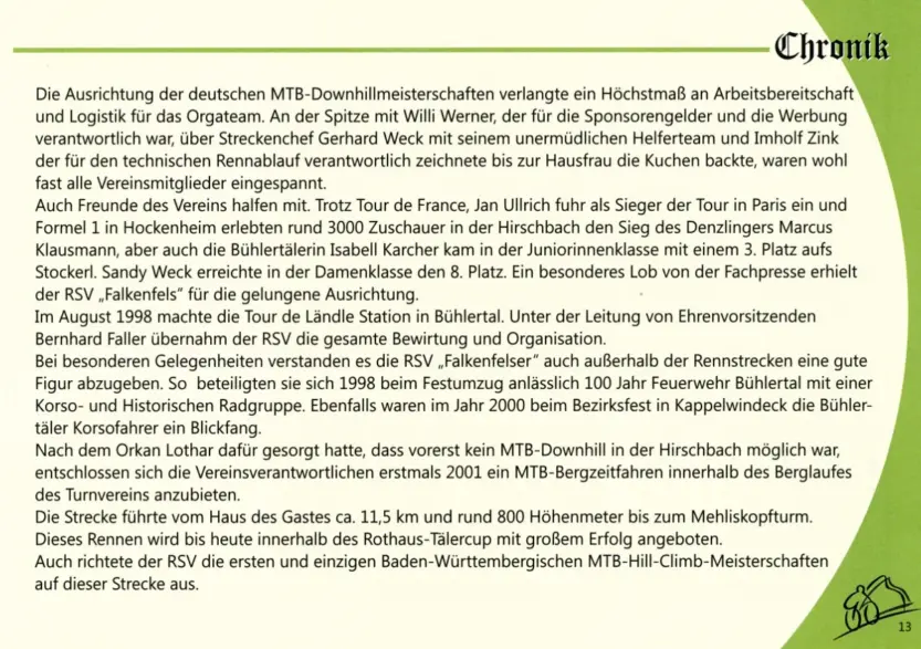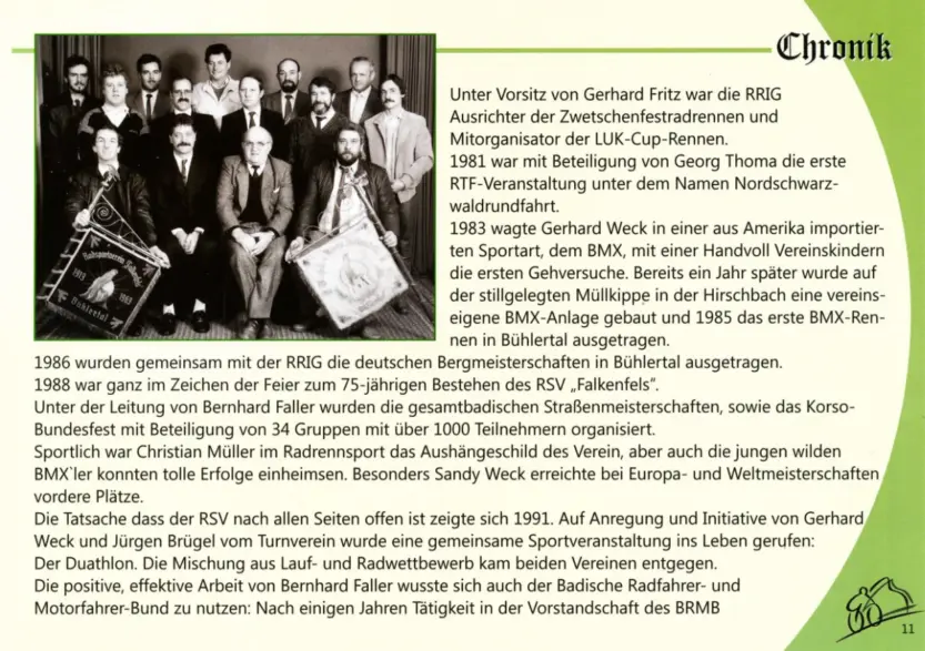 Auf 100 Jahre Vereinsgeschichte zurückblicken kann der Radsportverein „Falkenfels“ Bühlertal e.V.