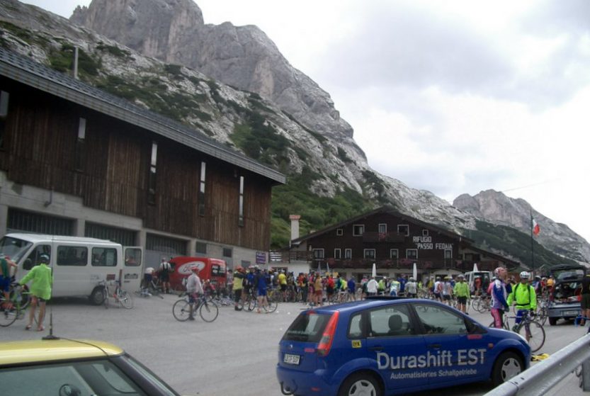 Die vierte Etappe am Donnerstag, 31. Juli war etwas schwerer einzustufen als die erste. Zu fahren waren zwei Berge der ersten Kategorie. Das Valler Joch und der Fedaia-Pass. Zum Fedaia musste eine schier endlose 3 Km lange Gerade mit Steigungen zwischen 11% und 14% überwunden werden und bei dem Schlussanstieg nochmals 16%. Eine echte Tortour.