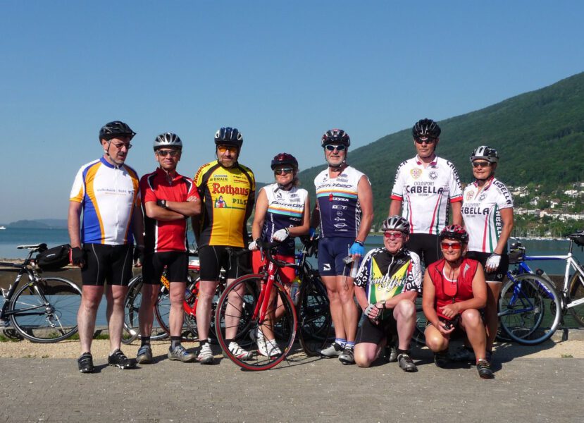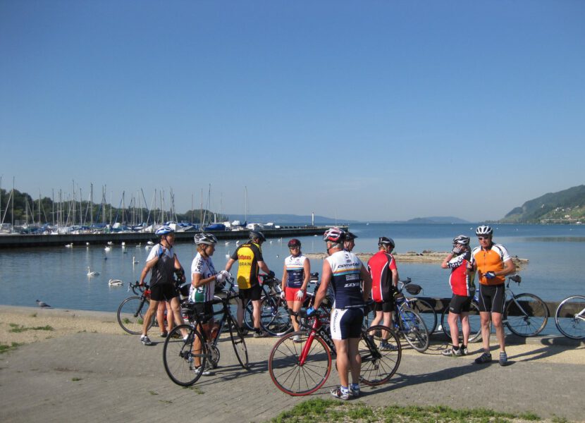 Der Frühstücksraum war sehr gut belegt, an den gehäuften Tellern sahen und hörten wir, dass es sich um Freunde aus Russland handelte. Wie am Vortag, starteten wir gegen 9 Uhr von der Stadtmitte in Richtung Bielersee. Hinter dem herrlichen Seenpanorama wurde das ein und andere Photo geschossen. Etwas abseits vom Bielersee ging die Strecke über Täuffelen und Ins in Richtung Murtensee, wo wir uns im Weingebiet Haut-Vully befanden. Vergeblich suchten wir an der Westseite des Murtensee Andreas, in der Hoffnung eines schönen Verpflegungsplatzes………., leider ohne Erfolg. Es gab eine 20km Andreas-Gedächtnis-Sonderschleife, bis wir uns dann in einer Bäckerei selbst versorgten. Das “Corpus delicti“ war, dass wir Andreas nicht mobil erreichen konnten => der Telefon-Akku war leer…..