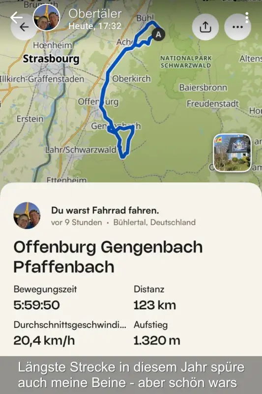 Längste Strecke in diesem Jahr, spüre auch meine Beine – aber schön wars