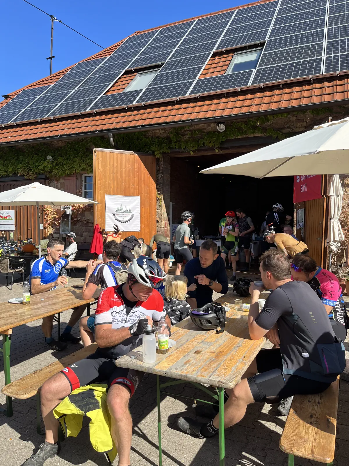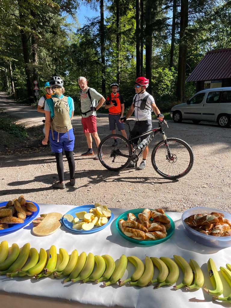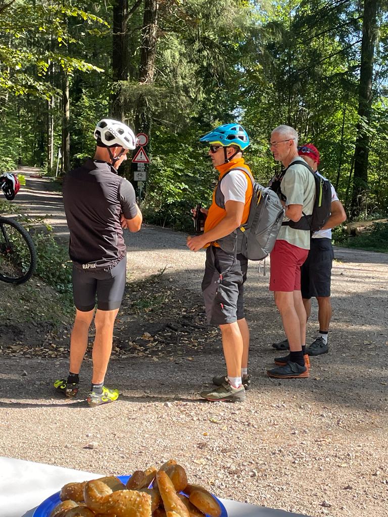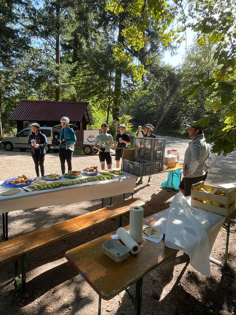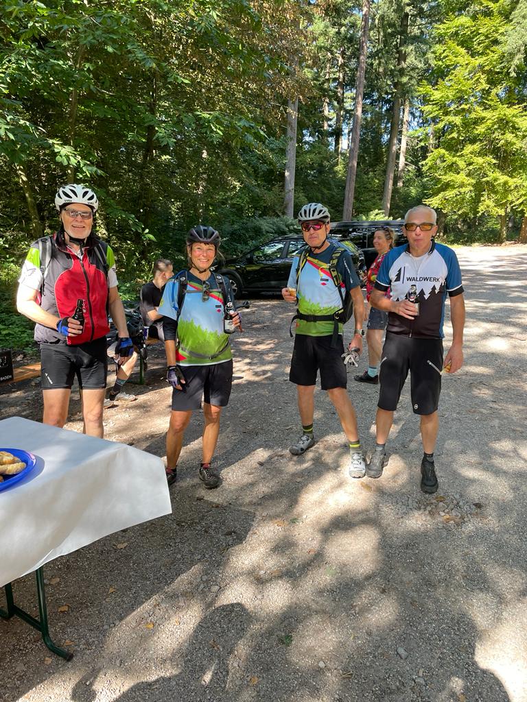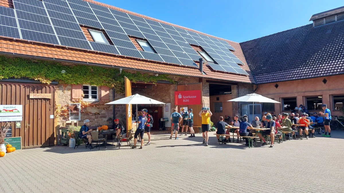 Das gute Wetter bot wunderbare Ausblicke ins Rheintal und die Vogesen. Unterwegs gab es erstklassige badische Verpflegung beispielsweise am Ferienhof Fischer in Seebach oder am Aspich Hof mit feinsten Schwarzwälder Spezialitäten wie Zwetschgenkuchen, Kartoffelsuppe, Holzofenbrot, Speck oder Wurstsalat. Da kamen alle Fahrer voll in den Genuss und für jedes Geschmäckle war etwas dabei.