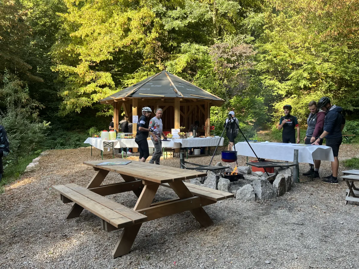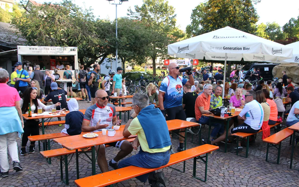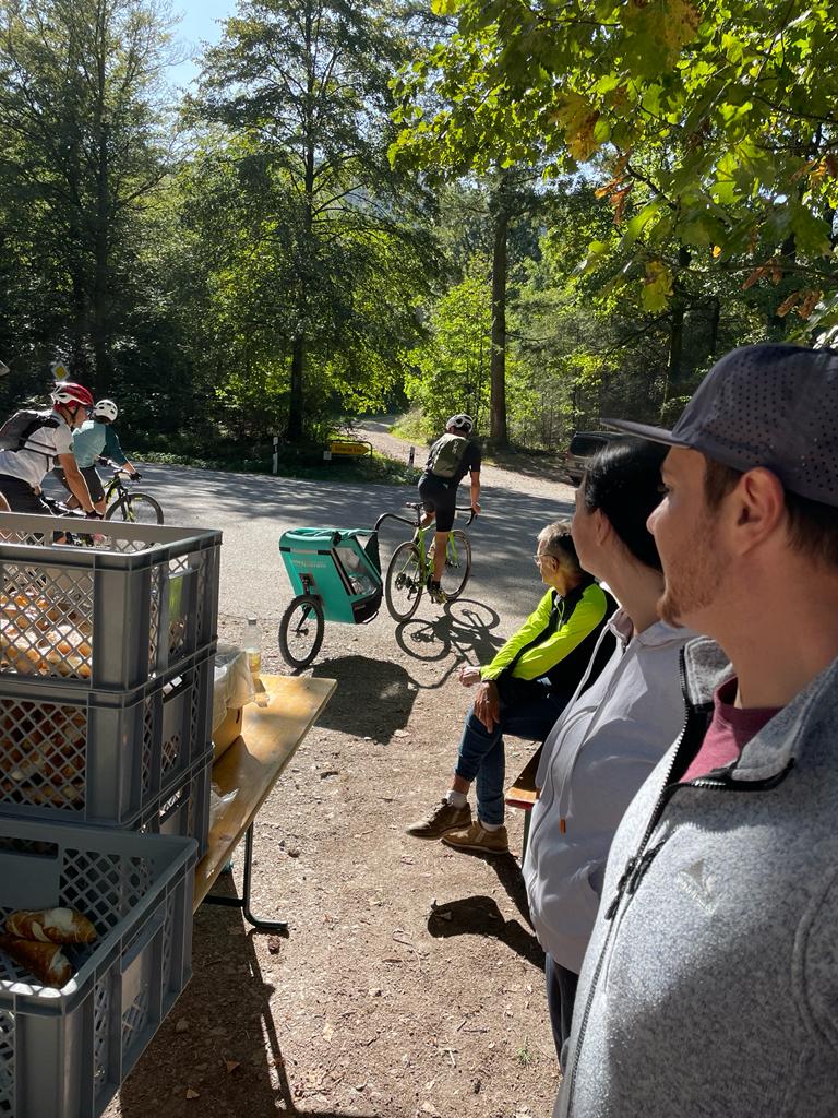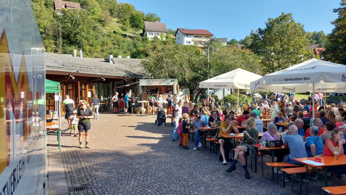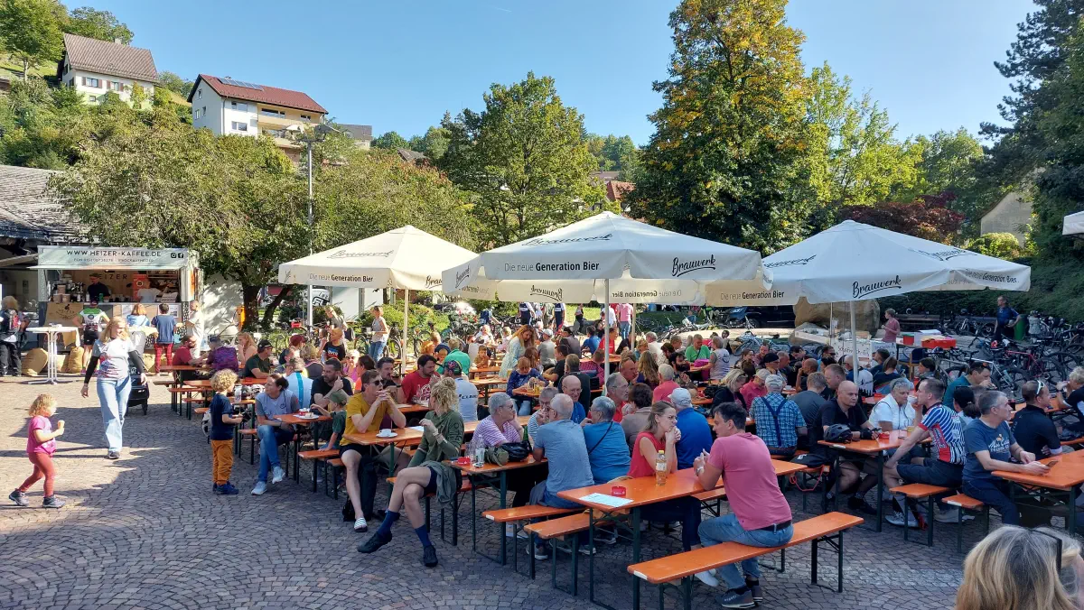 Am Nachmittag fand am Haus des Gastes ein Radlerhock statt. Im Angebot gab es frisch gezapftes Bier, ofenfrische Flammkuchen der Waldmännle, Schafsmilcheis, Leckeres vom Grill und feinen Kuchen mit feinstem Barista Kaffee.