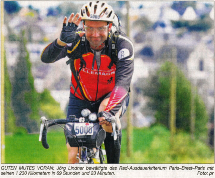 Bühlertal (afr). Einer besonderen Herausforderung stellte sich Triathlet Jörg Lindner vom RSV Falkenfels Bühlertal. Normalerweise ist der Ausdauersportler ja in drei Disziplinen zu Hause, doch als Spezialist für extreme Rad-Kriterien suchte er nun zum dritten Mal die Herausforderung der 1230 Kilometer langen Tour Paris-Brest-Paris. Im Jahr 1891 gingen unentwegte Sportsmänner zum ersten Mal auf die Strecke, das Rennen startete dann nur alle zehn Jahre. Heute führt die 1230 Kilometer messende Herausforderung alle vier Jahre über fast die gleichen Route wie 1891.