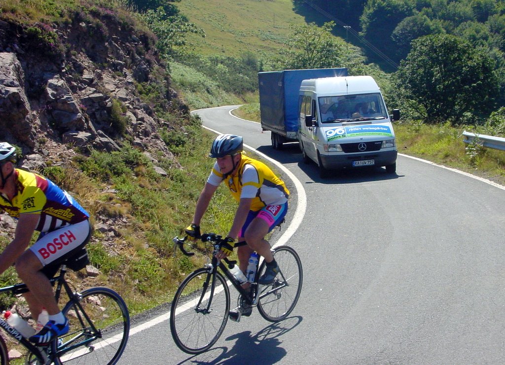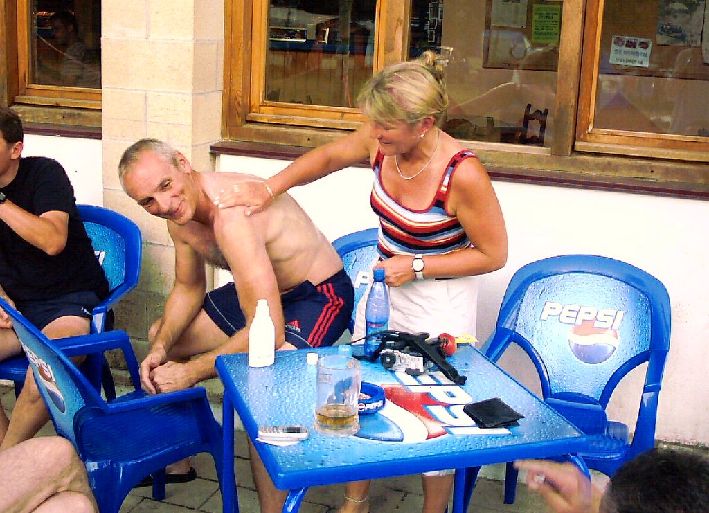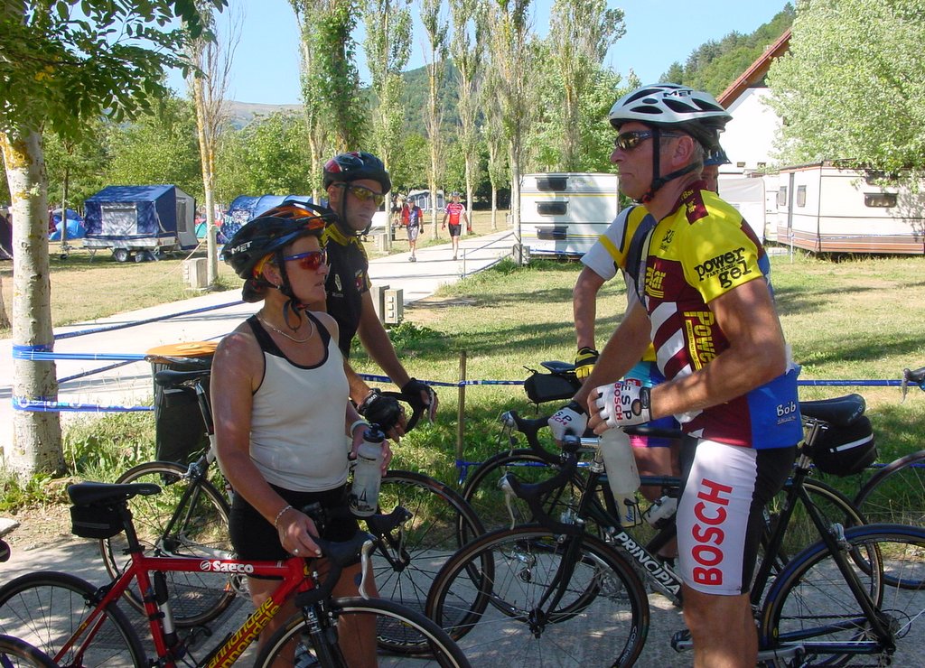 Als wir endlich auf dem Campingplatz ankamen, hat es wohl jedem für den ersten Tag gereicht, die Betten waren auf engstem Raum untergebracht. Mit dieser Situation mussten wir uns auch noch des öfteren auseinandersetzen, wobei wir feststellten, dass es auf spanischer Seite etwas mehr Komfort gab. Wolfgang und Wendel hatten zur Freude der meisten Teilnehmer einen Fernsehapperat samt SAT-Schüssel mitgenommen, so konnten wir abends in Eurosport öfters die aktuelle Tour de France – Etappe anschauen. Leider lies das Abbauen und Wegräumen ab und zu die Heinzelmännchen vermissen.